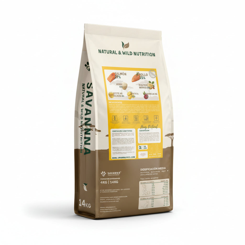 El Pienso de Cachorros Savanna con Salmón, Pollo y Arroz ha sido formulado para proporcionar a los cachorros una alimentación sana, natural y equilibrada durante su fase más importante de desarrollo. Su combinación de proteínas de salmón y pollo, junto con hidratos de carbono de fácil digestión como el arroz integral, ofrece un alimento altamente nutritivo y suave para el estómago.